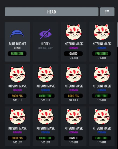 * The quantities shown below are the maximum amount that will ever be in circulation for each particular item released (e.g., a HFS hat will have 100 of that specific type available, but several different types of HFS hat can be released over time, each with 100 of each type available)