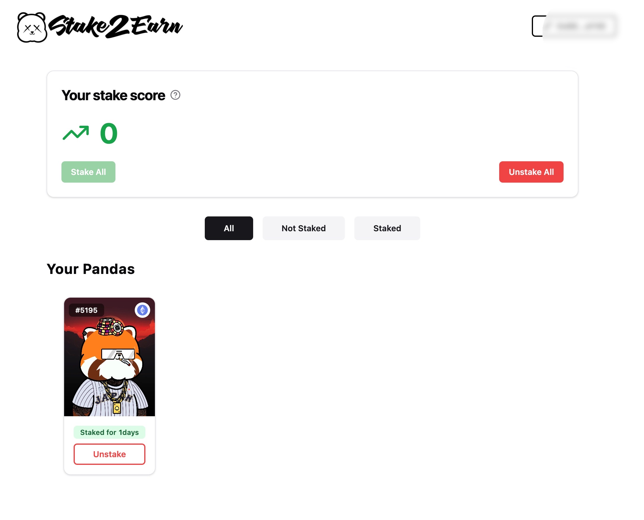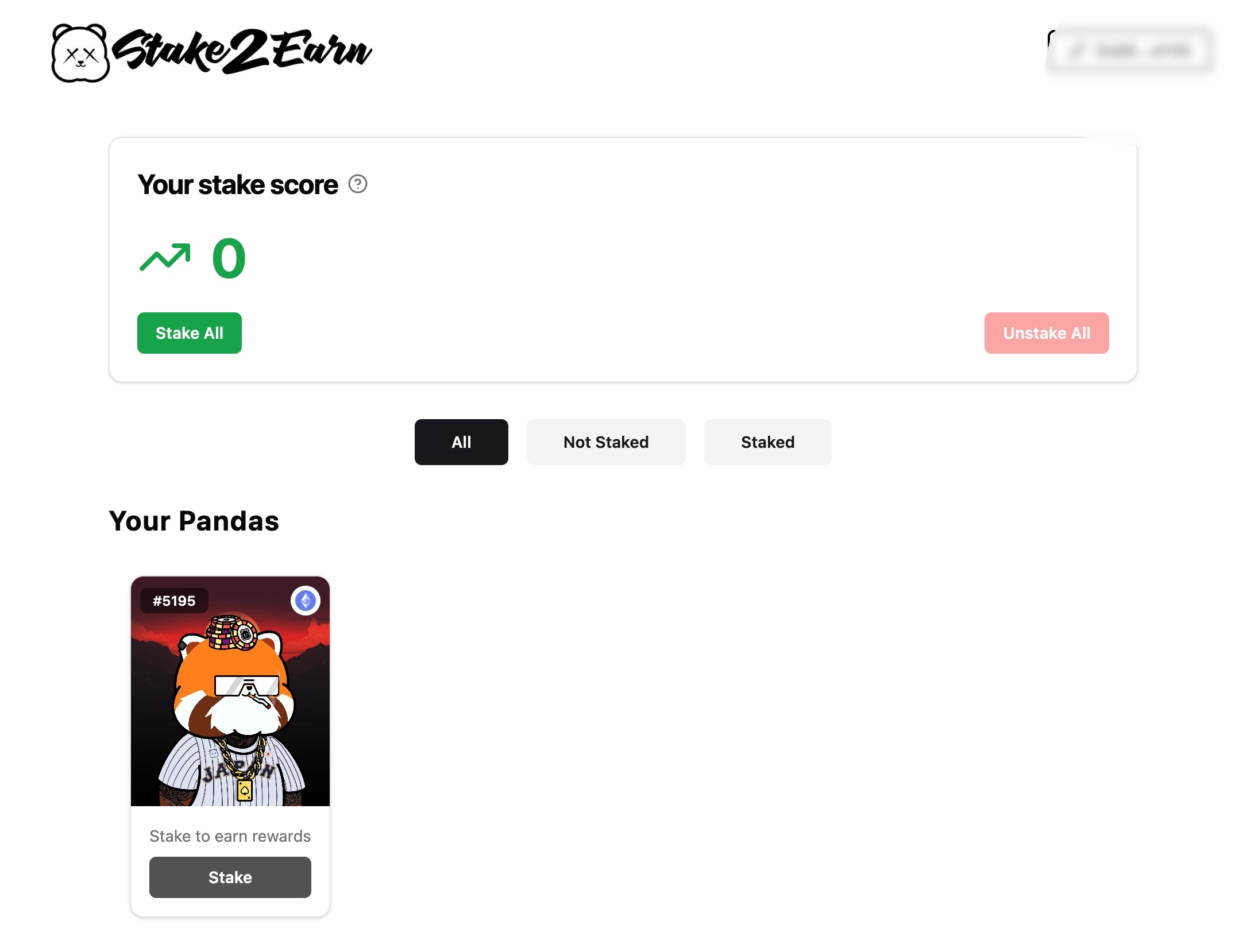 4. After staking your Kanpai Pandas NFTs you will see that they are staked and will begin accumulating points daily.